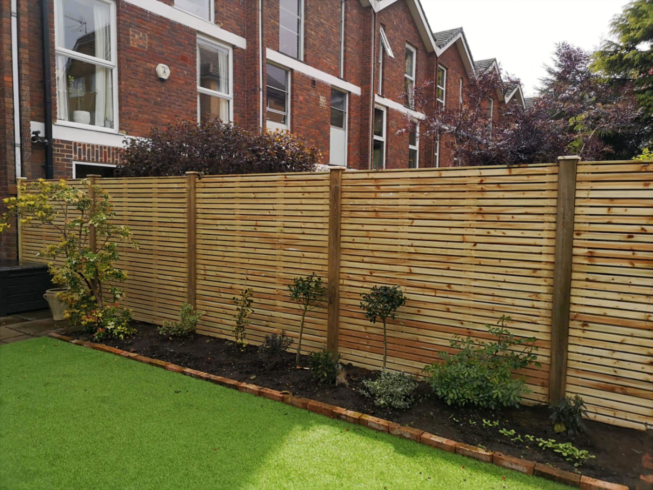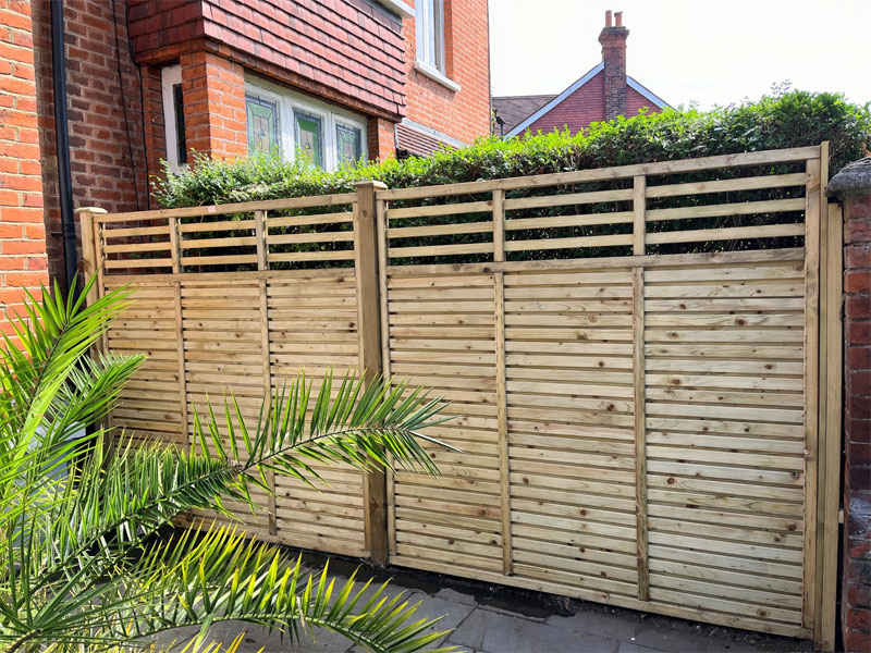 These heavy duty double sided contemporary panels are designed for a clean, modern aesthetic, providing both you and your neighbour with the same aspect. The image shows the panels installed on capped timber posts, though they can just as easily be mounted on concrete posts. They provide a sleek, unified appearance while offering enhanced resistance to weathering. Available in a range of heights, this style of fencing is an ideal choice for anyone looking to elevate their garden boundary or outdoor space with a durable, architectural finish.